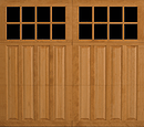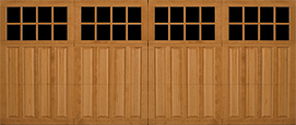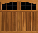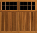 The vertical shadow line grooves of Carriage House Doors preserve the look of swinging doors. Framing is made of solid (no joined pieces) kiln-dried hemlock. Mortise and tenon door sections are glued and steel-pinned. Windows are standard with model 7420 and model 7421. They are true divided windows with individual glass separated by one inch muntins.